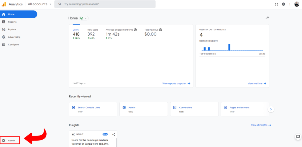 1. Ulogujte se u svoj GA4 nalog.