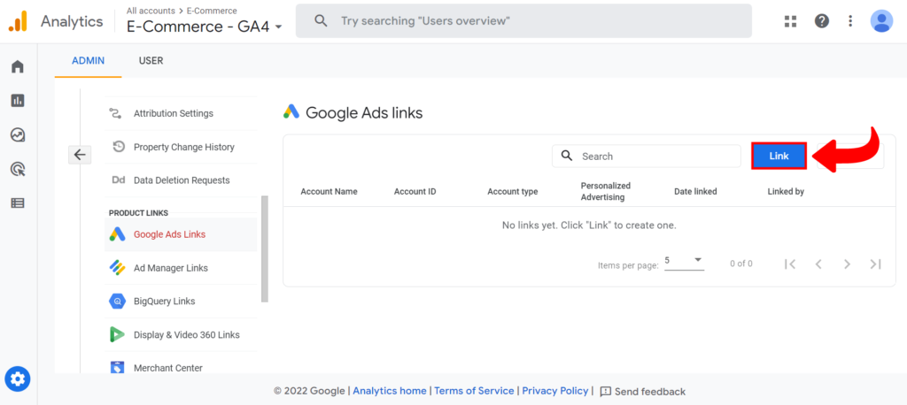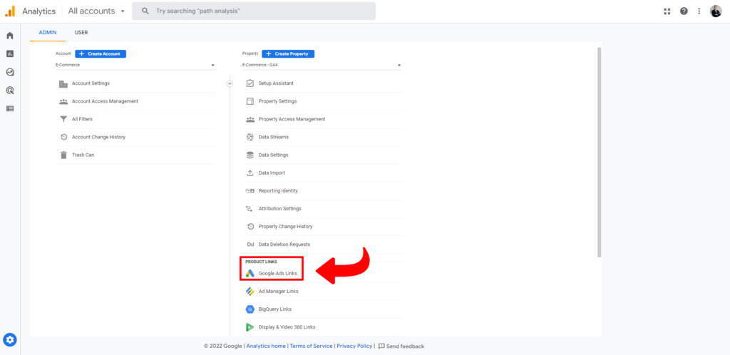 2. U delu “Property”, kliknite na opciju Google Ads Links. (Slika 2.)