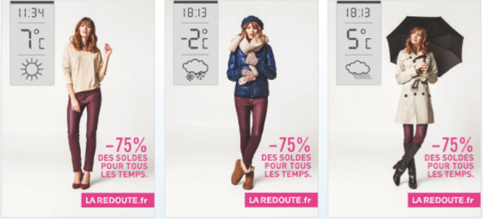 PRIMER: Kozmetičke kuće imaju mogućnost i prekopotrebnu širinu da kreiraju dve ili više paralelnih kampanja, jedna za proizvode za sunčanje, druga za sezonske parfeme, treća za univerzalnije vreme/proizvode itd. U zavisnosti od vremenskih uslova ili prilike, aktivira se kampanja koja više odgovara aktuelnim uslovima.